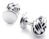 The perfect gift for that someone special. Silver knot cufflinks and matching dress studs, a unique gift from VIP Cufflinks.