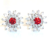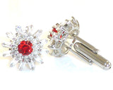 Voguish 2x6mm Red Ruby Topaz Round Cut Cufflinks. 2x6mm Red Simulated Ruby 24x5mm White Simulated Topaz. Color - Red. Style - Round Brilliant Cut. Size 18mm x 18mm, Material - 18K White Gold Plated. Net Weight 12 grams. Cufflinks arrive in elegant and luxury gift box, packaged in organza bag and gorgeous carrier bag with ribbon.