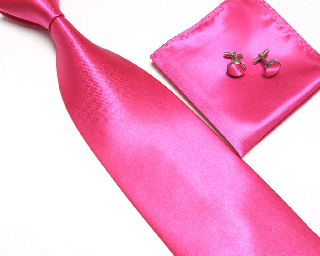 Pink Tie, handkerchief, cufflinks, 100% Silk