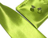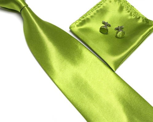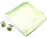 Green Tie, handkerchief, cufflinks, 100% Silk