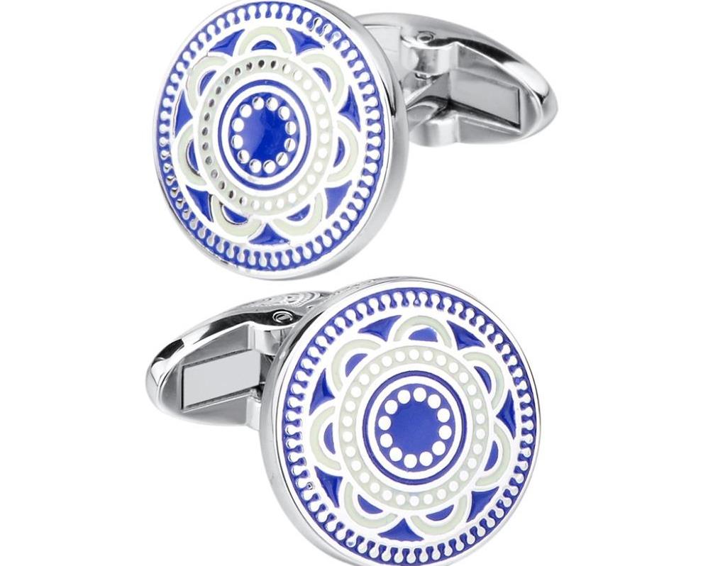 ENAMEL PATTERN BLUE SILVER CUFFLINKS