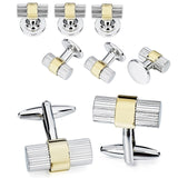 Black gun and Silver Rhodium Cylinder Cufflinks Tuxedo Studs Set