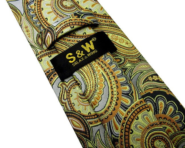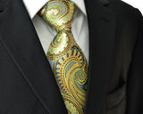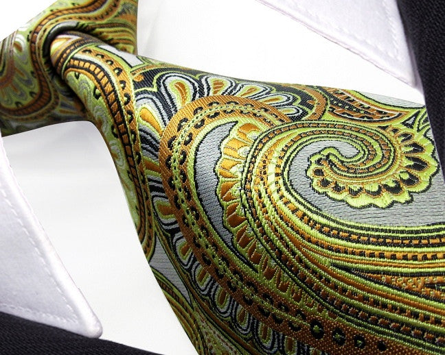 Paisley Multicolour Green Yellow Tie, 100% Silk
