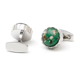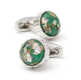 SILVER CASUAL GREEN BUTTON CUFFLINKS