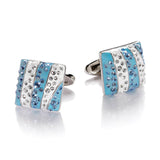 925 silver, Rhodium plated cufflinks Blue and clear cubic zirconia's cover this uniquely shaped cufflink. Nice and lightweight, these cufflinks are appropriate for both French cuff shirts and blouses. Cufflinks arrive in elegant and luxury gift box, packaged in organza bag and gorgeous carrier bag with ribbon.